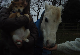 Here is Shinobi attempting to biff a pony on the nose, she miraculously became a lot braver once I was holding her!